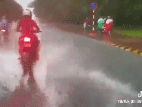 Clip: Thanh niên phóng xe PKL tốc độ cao giữa lúc mưa ngập ở Sài Gòn khiến người đi đường "ướt như chuột lột"