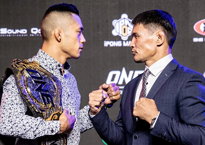 Tâm điểm của sự kiện là trận đấu bảo vệ đai vô địch thế giới của Martin Nguyễn (trái)