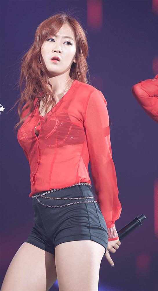 Min Ah của Girl's Day cũng từng rơi vào tình huống xấu hổ khi không chỉ hằn nội y sau trang phục mà còn để lộ quai áo.