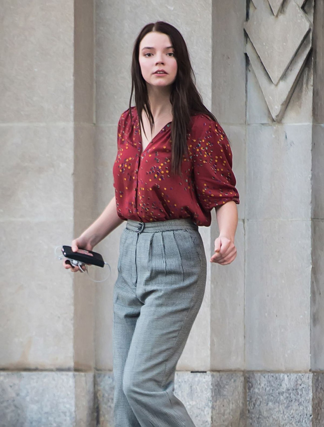 Nữ diễn viên Anya Taylor-Joy trông nữ tính và thanh lịch khi áp dụng combo áo sơ mi hoa, kết hợp với quần âu họa tiết. Với combo này thì sơ vin chính là lựa chọn sáng suốt nhất, vẻ ngoài nhờ vậy trông sẽ thời thượng hơn.