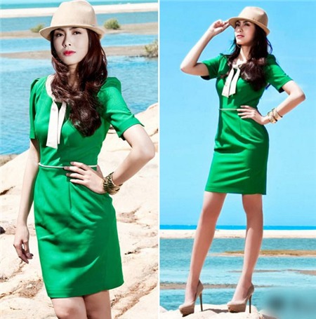 diện những chiếc váy gam màu xanh ngọc lục bảo để khoe sắc mỗi khi xuất