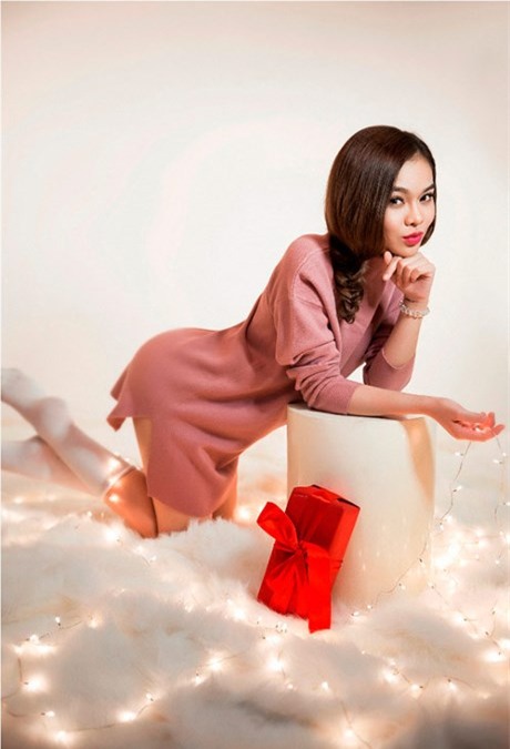 Trong bộ ảnh đón Noel 2015, danh hài Thúy Nga vừa thể hiện được nét mặn mà, quyến rũ, đầy sắc sảo của bà mẹ một con vừa thể hiện được sự tinh nghịch, dễ thương.
