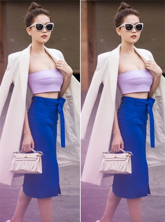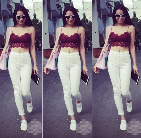 Diệp Lâm Anh cũng "ăn theo" trào lưu ăn vận crop top siêu ngắn. Cô tự