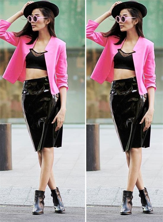 mới đây. Cô tinh tế chọn cho mình bộ vest thanh lịch nhưng kết hợp với crop top