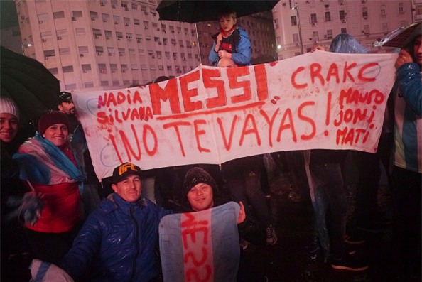 Trước đó, các CĐV Argentina cũng liên tục xuống đường để khẩn cầu Messi, mặc cho thời tiết ở thủ đô Buenos Aires đang rất xấu. Trong số những CĐV này có cả người già và trẻ em, tất cả đều đồng lòng xuống đường kêu gọi M.10 trở lại đội tuyển.