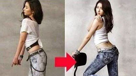Người biên tập tấm ảnh này đã ưu ái Shin Se Kyung khi làm cho cô trông mảnh mai hơn, đường cong nóng bỏng hơn và phần bụng cũng được vuốt gọn. Đặc biệt, đôi chân của ngôi sao Tazza rõ ràng trông dài và gọn gàng hơn.