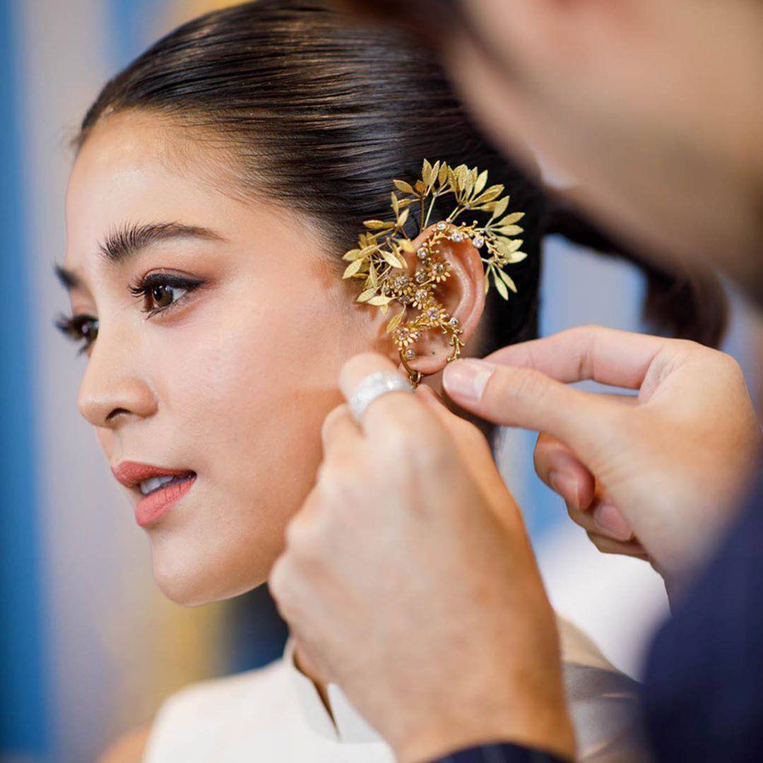 Ngày 5/7, nữ diễn viên Thái Lan Apinya Sakuljaroensuk tổ chức hôn lễ với bạn trai Nuttawuth Boonrapsap, kém cô 3 tuổi. Apinya xinh đẹp trong bộ váy cưới truyền thống khi thực hiện nghi lễ theo phong tục địa phương.
