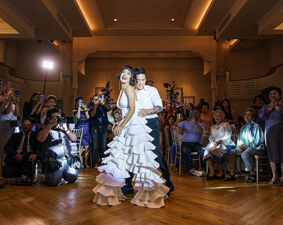 Cô dâu và chú rể âu yếm trước sự chúc phúc của người thân, bạn bè. Năm 2017, cô gây sốc khi quyết định cắt mái tóc dài thướt tha quen thuộc thay bằng kiểu đầu tomboy. Nữ diễn viên muốn thay đổi hình ảnh của bản thân trở nên đa sắc và cá tính hơn.