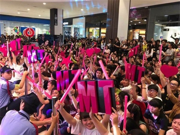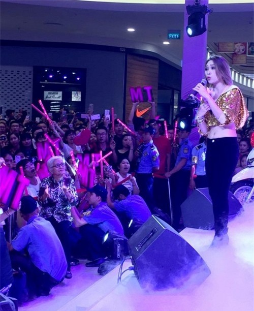 Khán giả quây kín khu vực sảnh trung tâm thương mại nơi Mỹ Tâm biểu diễn trong sự kiện vừa qua. |