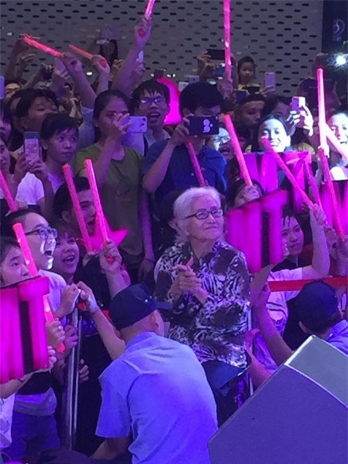 Vì phần biểu diễn của chị Tâm quá sung nên sau ca khúc đầu tiên các khán giả đã đứng dậy và che khuất tầm nhìn của cụ, dù cố gắng lắm nhưng không thể quan sát được, cụ bà cố đứng dậy với sự dìu dắt của cô con gái”.