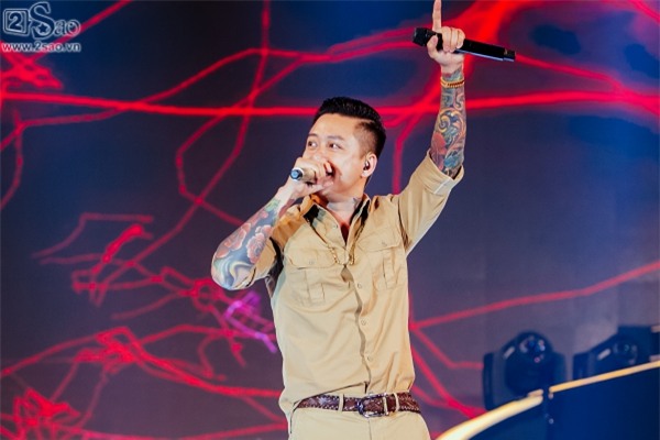 Tuấn Hưng luôn mang đến những phần trình diễn đầy máu lửa khi trình diễn bằng hai micro.