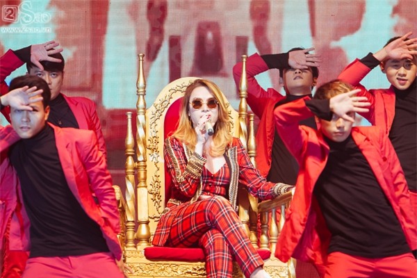 Xuất hiện cuối cùng trong đêm đại nhạc hội diễn ra vào tối 22/7, Mỹ Tâm lần đầu thể hiện ca khúc đang hot nhất hiện nay “Đâu chỉ riêng em”.