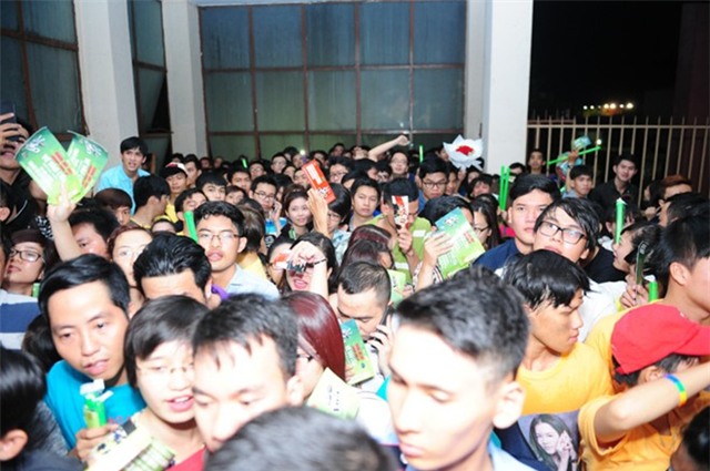 | Đêm chung kết Giọng hát Việt nóng hơn bởi có sự xuất hiện của Sơn Tùng M-TP. Hàng trăm khán giả trẻ ồ ạt, xô đẩy nhau để có mặt tại sân khấu khiến lực lượng bảo vệ không kiểm soát được tình hình. Dù chương trình lên sóng lúc 21h nhưng từ chiều, người hâm mộ đã túc trực sẵn ở Nhà thi đấu Tân Bình, TP HCM. |