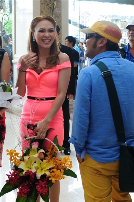 | Mỹ Tâm rực rỡ trong bộ váy hồng hở vai. |
