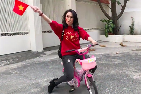 "Họa mi tóc nâu" vừa chạy trước sân nhà vừa cầm cờ và hô to "Việt Nam vô địch".