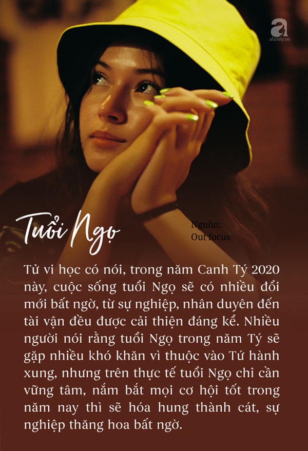 Tử vi học có nói, trong năm Canh Tý 2020 này, cuộc sống tuổi Ngọ sẽ có nhiều đổi mới bất ngờ, từ sự nghiệp, nhân duyên đến tài vận đều được cải thiện đáng kể. Nhiều người nói rằng tuổi Ngọ trong năm Tý sẽ gặp nhiều khó khăn vì thuộc vào Tứ hành xung, nhưng trên thực tế tuổi Ngọ chỉ cần vững tâm, nắm bắt mọi cơ hội tốt trong năm nay thì sẽ hóa hung thành cát, sự nghiệp thăng hoa bất ngờ. Nhìn chung, năm 2020 sẽ là một năm có nhiều điều mong chờ với tuổi Ngọ, bất kể là làm gì, họ cũng sẽ học được thêm nhiều thứ mới mẻ thú vị.