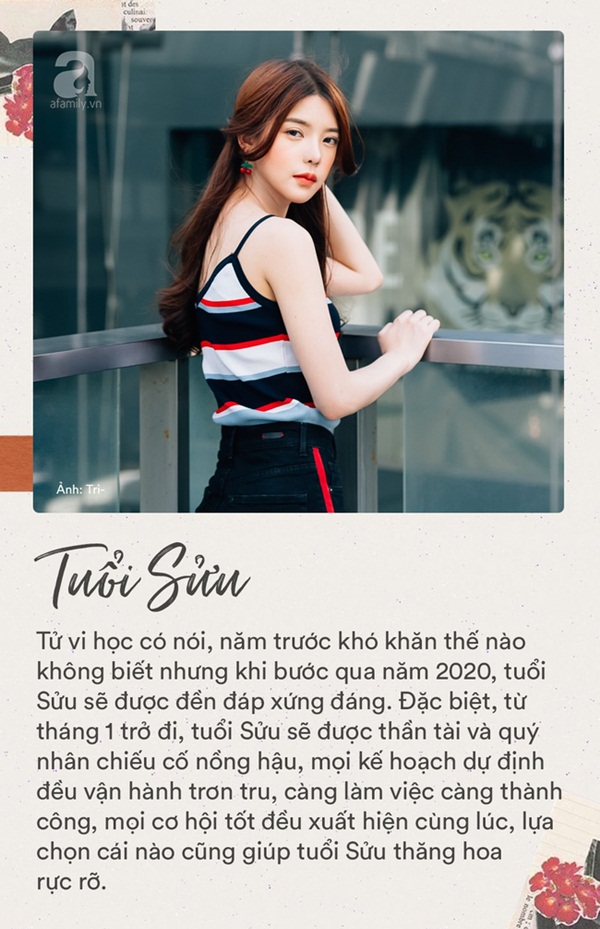 Tử vi học có nói, năm trước khó khăn thế nào không biết nhưng khi bước qua năm 2020, tuổi Sửu sẽ được đền đáp xứng đáng. Đặc biệt, từ tháng 1 trở đi, tuổi Sửu sẽ được thần tài và quý nhân chiếu cố nồng hậu, mọi kế hoạch dự định đều vận hành trơn tru, càng làm việc càng thành công, mọi cơ hội tốt đều xuất hiện cùng lúc, lựa chọn cái nào cũng giúp tuổi Sửu thăng hoa rực rỡ. Sau Tết Canh Tý, tuổi Sửu cần phải phát huy thế mạnh nhiều hơn để kiếm được khối tài sản to lớn, dư dả sống thoải mái đến vài năm sau. Nhìn chung, năm 2020 là năm đáng mong chờ với tuổi Sửu.