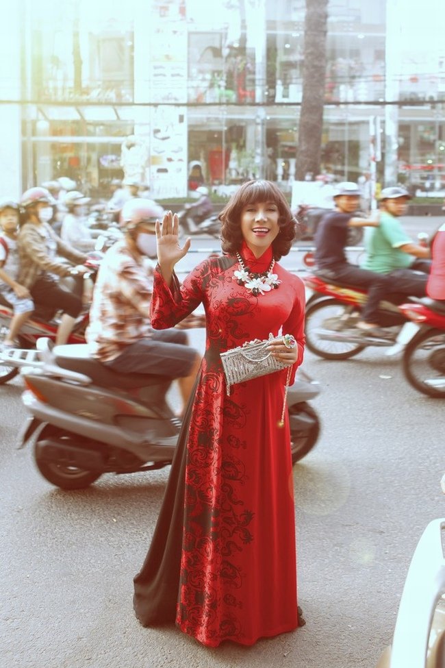 Long Nhật có nhiều hình ảnh đẹp trong tà áo dài thướt tha, nữ tính.