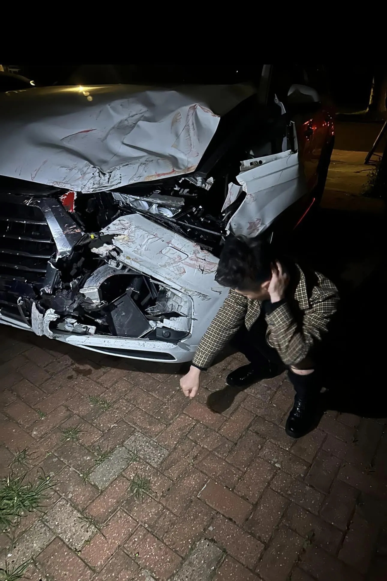 Ca sĩ Du Thiên thất thần sau cú va chạm xe hơi
