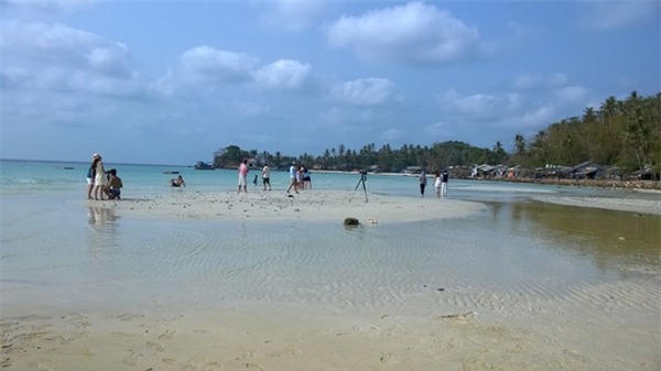 Lần theo con đường quanh đảo chừng vài km, đập vào mắt chúng tôi là bãi Cây Mến với hàng dừa thẳng tắp. Nước biển trong vắt. Đây là bãi tắm ưa thích của nhiều du khách đến với Nam Du.