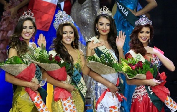 Á hậu 3 - Hoa hậu Lửa của cuộc thi Miss Earth 2016 vừa bị truất ngôi (trái ngoài cùng).