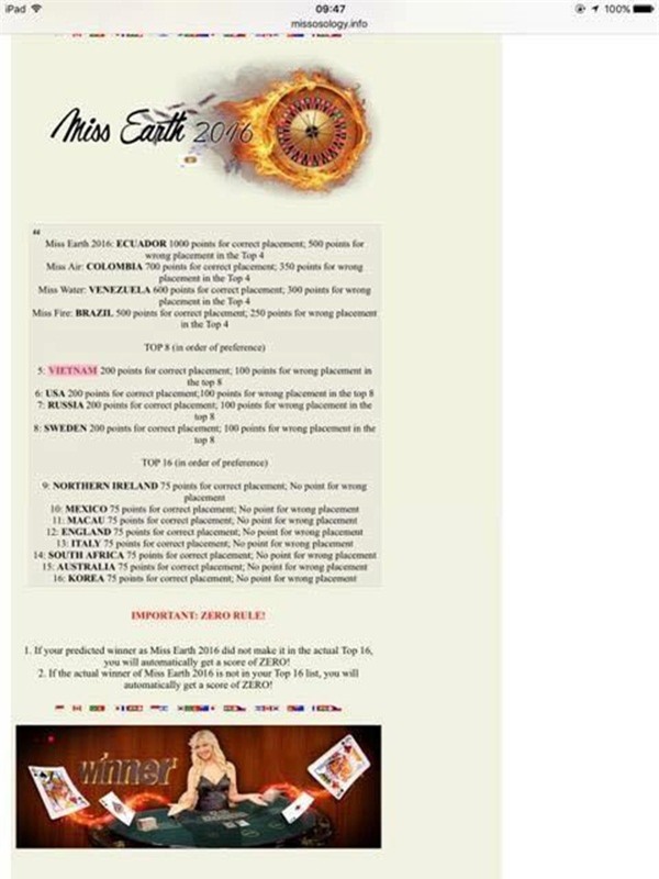Kết quả của cuộc thi Hoa hậu Trái đất 2016, Nam Em xếp ở vị trí thứ 5, ngay sau Á hậu vừa bị phế truất.