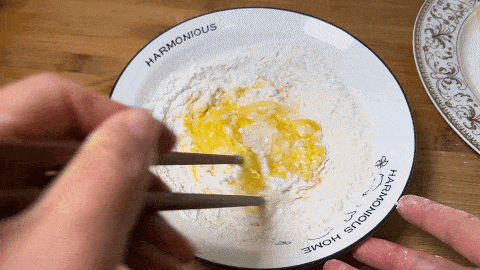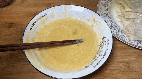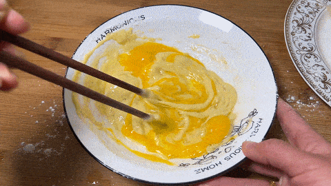 4. Chuẩn bị tô lớn, bạn có thể cho hai quả trứng, thêm bột chiên, bột mì trộn đều.