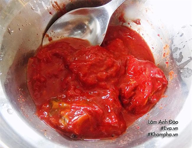 Bước 4: Gấc và nước ấm cho vào tô trộn đều.