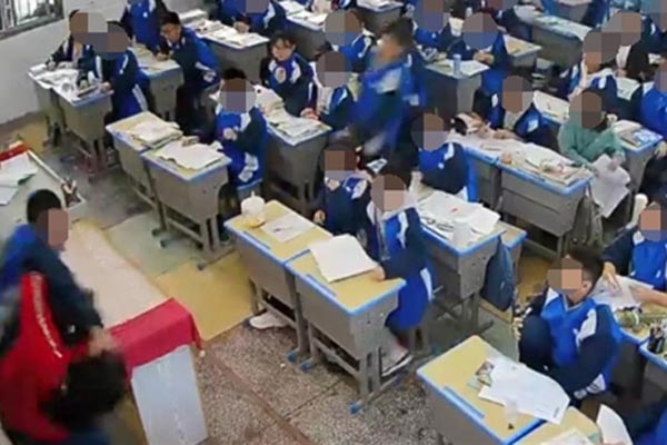 Sau đó, người đàn ông này xông thẳng vào một lớp học rồi lớn tiếng. Người này dùng tay đánh vào đầu cô giáo, túm tóc, kéo cô ra khỏi lớp và tiếp tục hành hung dưới trời mưa.