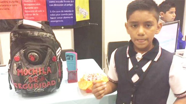 Tại hội chợ khoa học Expociencias diễn ra tại bang Tamaulipas (Mexico), cậu bé Juan David Hernandez (11 tuổi) đã giới thiệu phát minh ba lô chống đạn của mình, Business Insider cho hay.