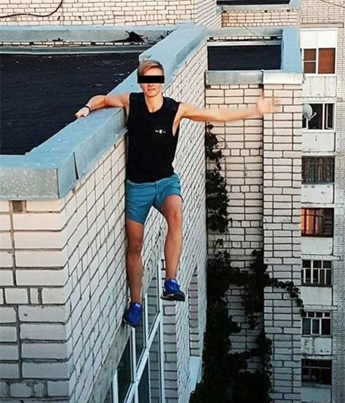 Vào một buổi tối cuối tuần trước, nam sinh liều lĩnh này đã rủ một nhóm bạn leo lên tầng cao nhất của một tòa nhà 9 tầng để chụp ảnh. Anh ta buộc dây giữ vào bụng và di chuyển trên mép tường, trong khi tay cầm theo chiếc điện thoại để chuẩn bị chụp cảnh ngã từ tòa nhà.