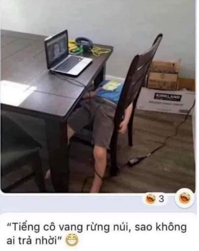Mới đây, một bức ảnh được một dân mạng đăng tải đã khiến nhiều người cười ngất. Theo đó, tấm ảnh này ghi lại cảnh một cậu học trò đang trong giờ học online, trước mặt là một chiếc laptop đang mở trình duyệt lớp học trực tuyến. Thế nhưng, cô ở đó, còn trò thì... nằm vất va vất vưởng trên chiếc ghế.