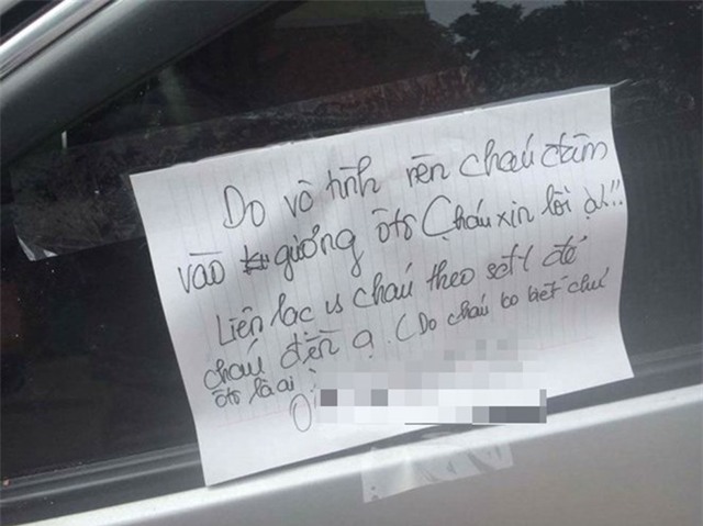 Trước đó Infonet đã đưa tin, trên mạng xã hội lan truyền một bức ảnh chụp tờ giấy dán vào kính ô tô với nội dung: ““Do vô tình nên cháu đâm vào gương ôtô. Cháu xin lỗi chú! Liên lạc với cháu theo số điện thoại để cháu đền ạ (Do cháu không biết chủ ôtô là ai)”, theo sau đó là số điện thoại của người này.
