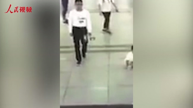 Những hình ảnh trên CCTV ghi lại cho thấy, khi bé trai 4 tuổi này đi cùng mẹ và em trai tại trung tâm thương mại Phúc Điền, thành phố Nghĩa Ô, Chiết Giang thì đột ngột bị một nam thanh niên mặc áo phông trắng đi phía đối diện bất ngờ đạp vào người, khiến cậu bé bị bay xa một đoạn.