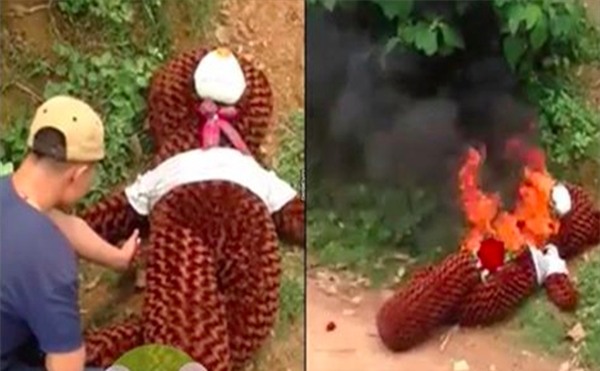 Cô gái từ chối khiến chàng trai bộc phát cảm xúc, quyết định đốt chú gấu bông và cả bó hoa tỏ tình. |