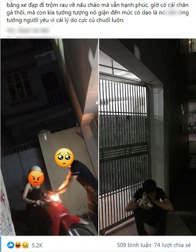 Lúc lên gọi bạn gái sang ăn cùng mở ra chân gà có mùi vì cả ngày đi xe khách với trời nóng quá nó thiu. Bạn gái cho rằng thanh niên kia không tôn trọng mình, cho ăn chân gà hỏng đồ cỗ thừa nên chửi nhau bỏ về. Vấn đề nó nhỏ xíu mà cũng cãi nhau chia tay được, khó hiểu vô cùng. Yêu đương bây giờ lạ lùng thật.