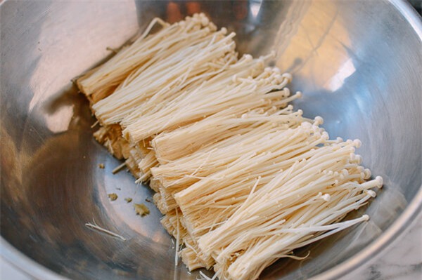 Nấm kim châm sau khi mua về thì cắt bỏ phần rễ nấm.