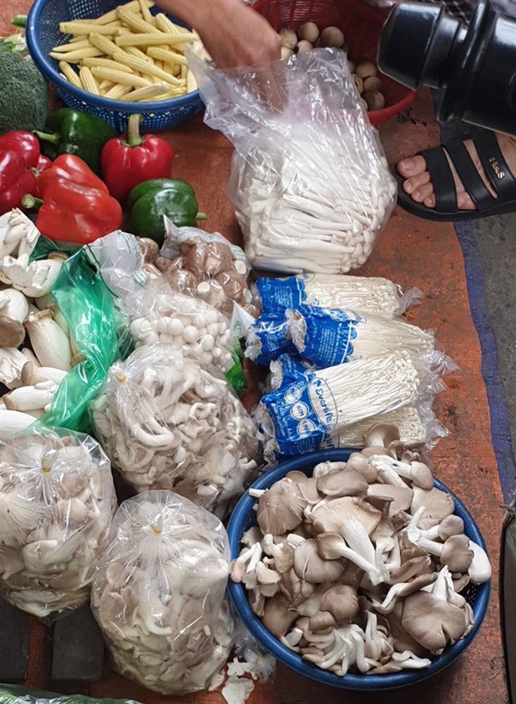 Nấm tươi bày bán ngay lối đi ở các chợ dân sinh.