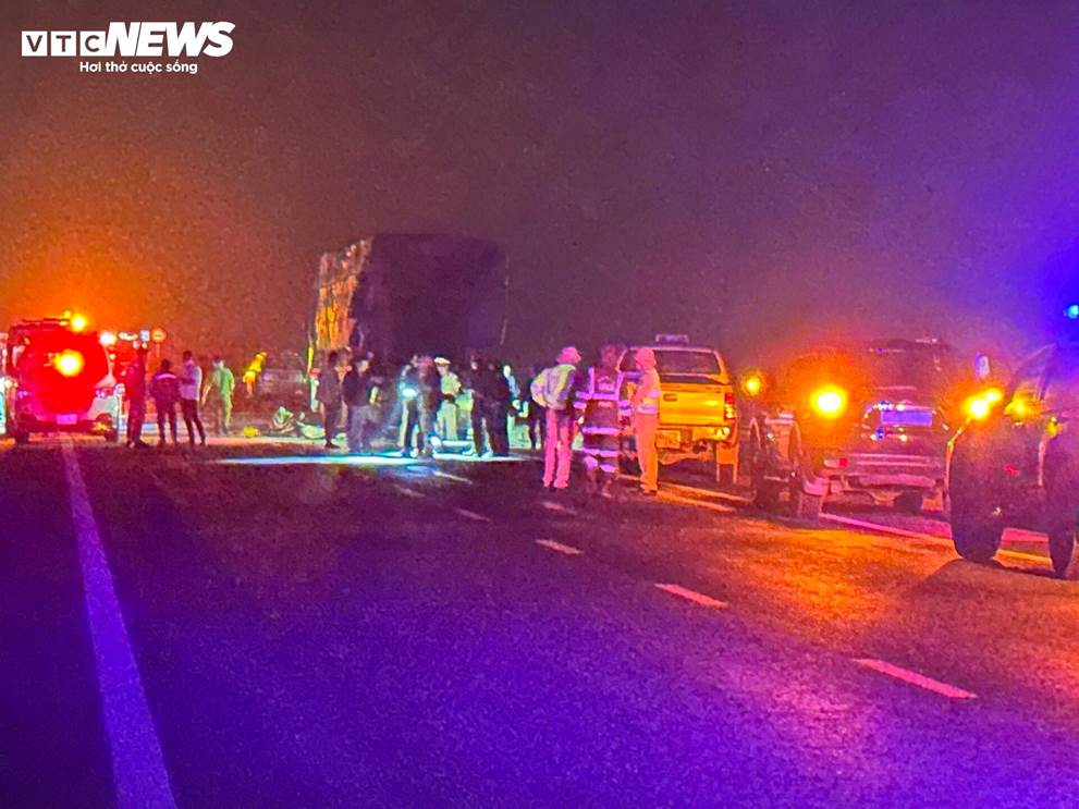 Tài xế xe khách khẳng định, thời điểm xảy ra tai nạn thì xe tải dừng trên cao tốc và không bật tín hiệu đèn khẩn cấp. (Ảnh: KTHS)