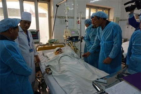 Bác sỹ Tiến cho hay, hiện tại bệnh nhân vẫn đang trong tình trạng hôn mê sâu, phải thở bằng máy, chứ chưa tự thở được. Mấy hôm nay, bệnh nhân vẫn đang sốt cao, toàn 39- 40 độ, khả năng là do bị nhiễm khuẩn từ mảnh đạn văng vào.