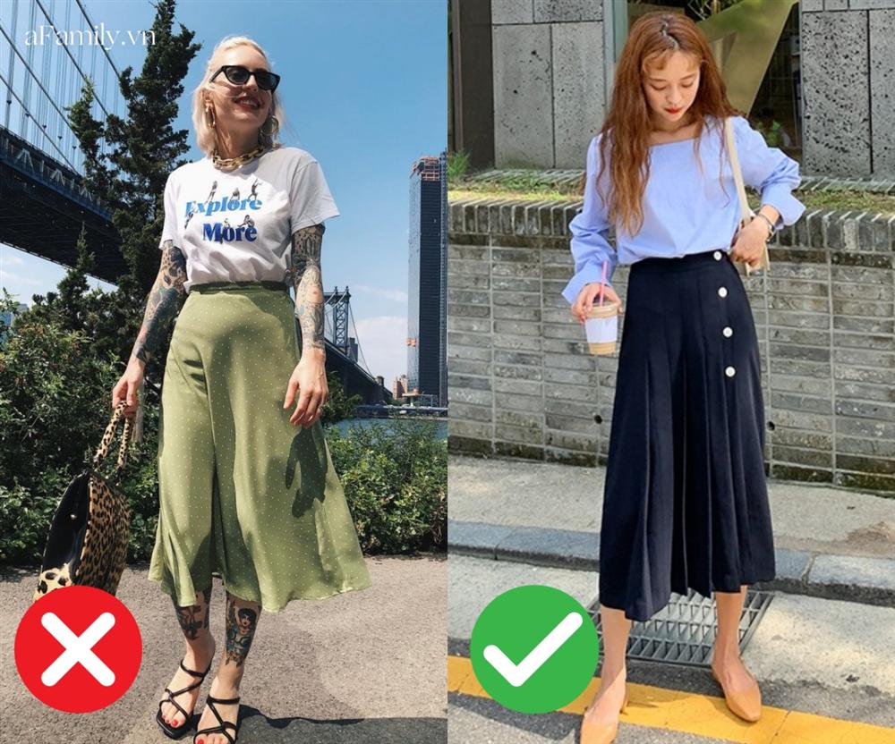 Quần bó chẽn đã dễ tố cáo vùng bụng thiếu thon thả, lại còn sơ vin thì nhược điểm của bạn sẽ càng lộ rõ mồn một trong mắt người đối diện. Thay vào đó bạn có thể chuyển sang những mẫu quần ống rộng/ống đứng với chất liệu vải dày dặn, không quá bó sát để che đi nhược điểm. Bên cạnh đó nếu quần có thêm chi tiết thắt lưng, nơ buộc, cạp cao thì sẽ càng tôn dáng tốt hơn. Ngoài ra, bạn cũng đừng quên sơ vin gọn gàng để tạo hiệu ứng dáng cao thon, vừa làm lu mờ vòng bụng béo.