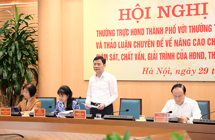 Tại hội nghị, Phó Chủ tịch HĐND Thành phố Phạm Quí Tiên trình bày dự thảo chuyên đề về nâng cao chất lượng, hiệu lực, hiệu quả hoạt động giám sát, chất vấn, giải trình của HĐND, Thường trực HĐND các cấp thành phố Hà Nội nhiệm kỳ 2021-2026. Trong đó, hoạt động giám sát, tổ chức chất vấn, giải trình của HĐND, Thường trực HĐND các cấp đảm bảo thực chất, đa dạng các hình thức tổ chức, có sự phối hợp chặt chẽ giữa các cơ quan liên quan; tăng cường chất lượng và nâng cao hiệu lực, hiệu quả sau giám sát, chất vấn, giải trình.