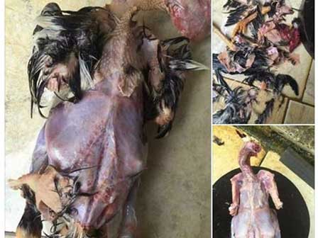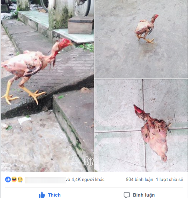 Mới đây, trong một nhóm nổi tiếng dành cho giới trẻ, thành viên N.T.Đ đã đăng tải bức ảnh một con gà "được" vặt lông nhưng vẫn cố "chạy ngay đi". Cư dân mạng được phen sửng sốt khi biết con gà đã được cắt tiết, nhúng nước sôi. Nhiều người gọi đây đúng là "Sống không được mà chết cũng không xong".