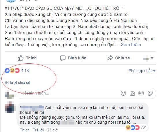 Thành viên có nickname Lan Anh bày tỏ: “Chuyện này không phải mình nghe lần đầu, cô bạn mình cũng thế, định kế hoạch sang năm cho hợp tuổi vì cũng còn trẻ và muốn tận hưởng thời gian vợ chồng son.Vậy mà đùng cái biết có thai, hóa ra mẹ chồng cũng nhân lúc họ không có nhà lên lục khắp phòng rồi chọc thủng một số bao cao su. Bà tinh ý lắm, không làm hỏng hết đâu, chỉ... một số thôi. Nên bà lén làm việc này từ 4 tháng trước mà mãi 3 tháng sau bạn mình mới dính”.