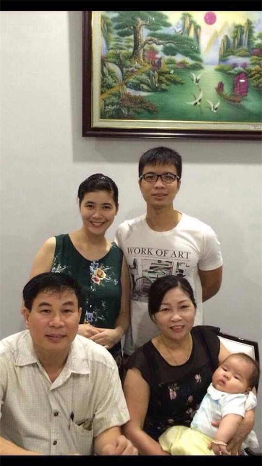 "Hôm mình mới sinh xong được 2 ngày thì gặp một cơn đau đầu kinh khủng và thiếp đi, lúc lơ mơ tỉnh dậy thì thấy dì, bác và bố mẹ đang nói chuyện, mẹ chồng đang ngồi bên cạnh bóp đầu cho mình. Lúc đó thực sự rất đau nhưng trong lòng thì vô cùng ấm áp. Mấy ngày ở viện, mẹ chạy đi chạy lại lo cơm nước, giặt giũ, vất vả lắm, tới mức sút đi 2 kg, vừa rồi mới hồi lại được số cân cũ đấy", Thủy chia sẻ.