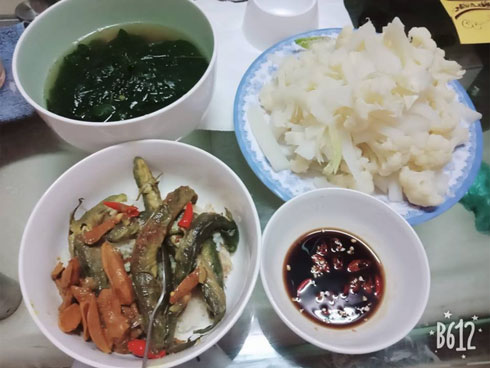 “Mọi người đọc xong không hiểu bảo 2 đĩa xôi khác nhau và bàn khác nhau. Thì đúng như vậy thật mà. Ảnh 2 là ảnh bạn ấy chụp thật thôi còn ảnh 1 chắc lấy mạng để dễ hình dung”
