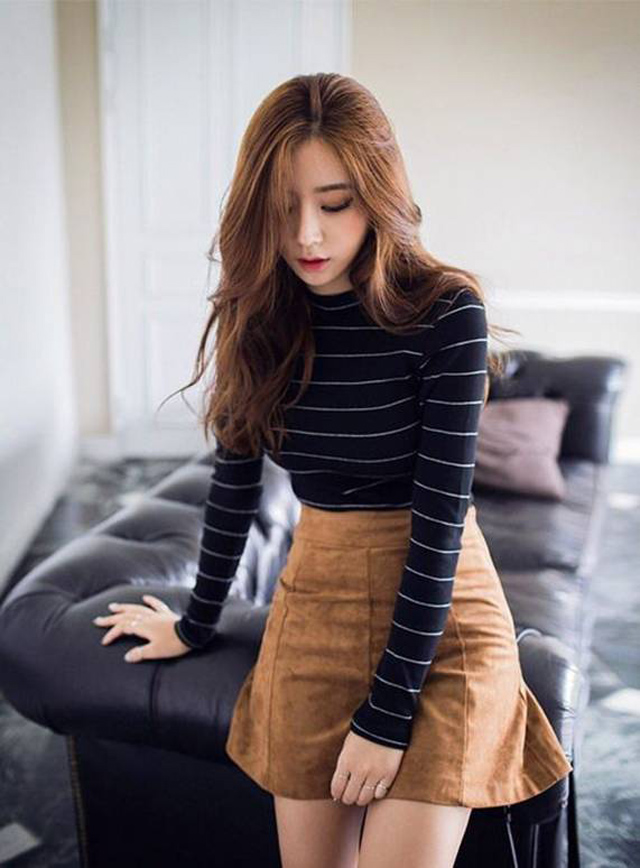 Chân váy chữ A đảm bảo cho bạn sự trẻ trung, năng động mà không kém phần mềm mại, quyến rũ. Có nhiều cách để xử lý độ ngắn của chiếc váy khi trời se lạnh đó là mặc cùng quần tất hoặc boots quá gối.