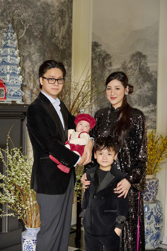 Á hậu Tú Anh và chồng chụp ảnh cùng các con trong dịp Tết Nguyên đán vừa qua. Ảnh: FBNV.