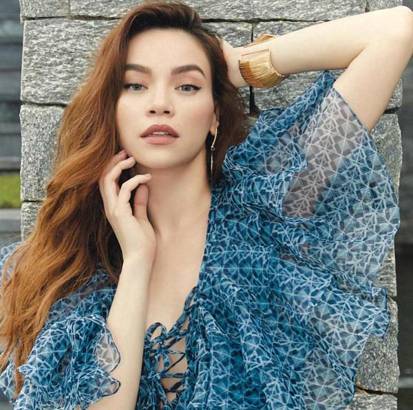 Chọn màu son tương đồng với phấn mắt khiến gương mặt của Hồ Ngọc Hà trông tây hơn rất nhiều.