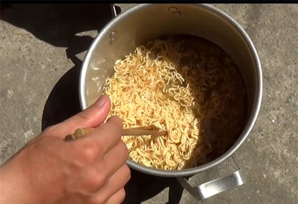 Đặc biệt, anh Dánh tại Hà Nội cũng đã tiến hành thử nghiệm việc đun nấu mì tôm dưới trời nắng nóng. Theo đó, anh Dánh đã tiến hành dùng 1 chiếc nồi nhôm đổ nước lạnh vào đặt dưới trời nắng khoảng 30 phút, sau đó tiến hành bỏ mì vào, chỉ ít lâu sau đã khiến mì tôm chín.